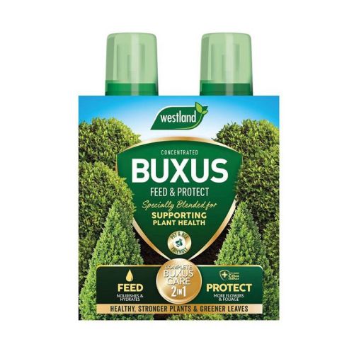 Westland Buxus 2 in 1 Feed & Protect is specially formulated to strengthen the plant from within. This 2-in-1 solution comprises of two bottles; the first contains a concentrated Buxus feed. This feed gives greener as well as healthier foliage. The second bottle contains a protection concentrate to deter box blight.