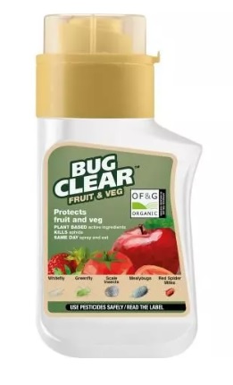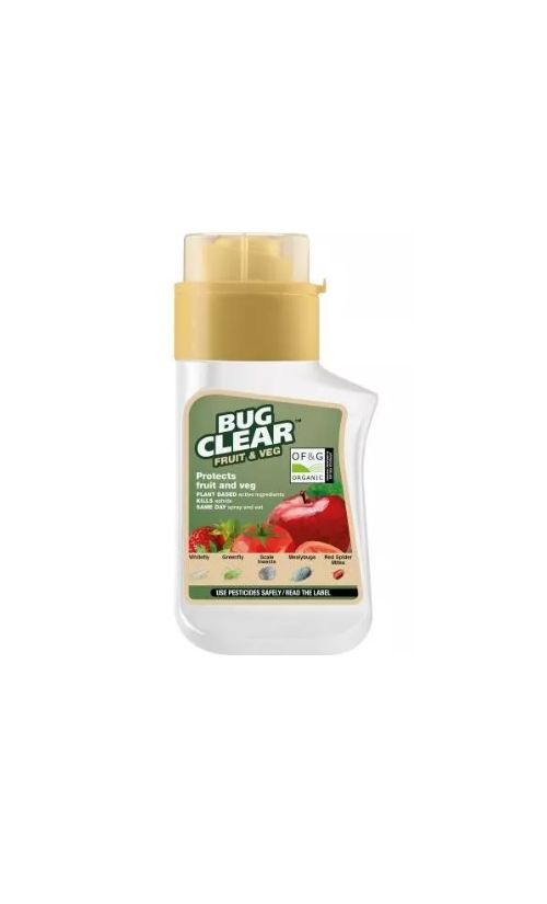 BugClear™ Fruit & Veg concentrate controls aphids, mealy bugs, red spider mites and other mites. It is ideal for use on fruit and vegetables (same day spay and eat), and for use on ornamentals. Based on rapeseed oil, the product is fully certified for use in organic gardening. The bottle is made from 100% recycled material. Due to regulations, the bottle cannot yet be recycled.