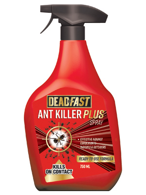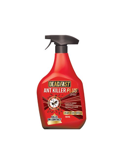 Deadfast Ant Killer Plus Spray kills ants on contact. With long-lasting protection, it is ideal for use indoors and outdoors. The formula stays active for three months, with the micro-capsules sticking to the ant’s body which is then carried back to the nest for total control.