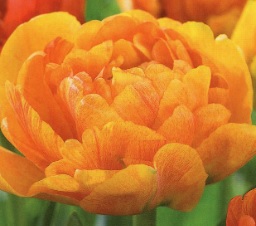 Tulip Sunlover has rich double blends of orange and red which mature gradually, a pretty double for borders and pots.