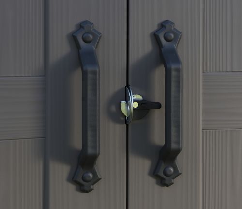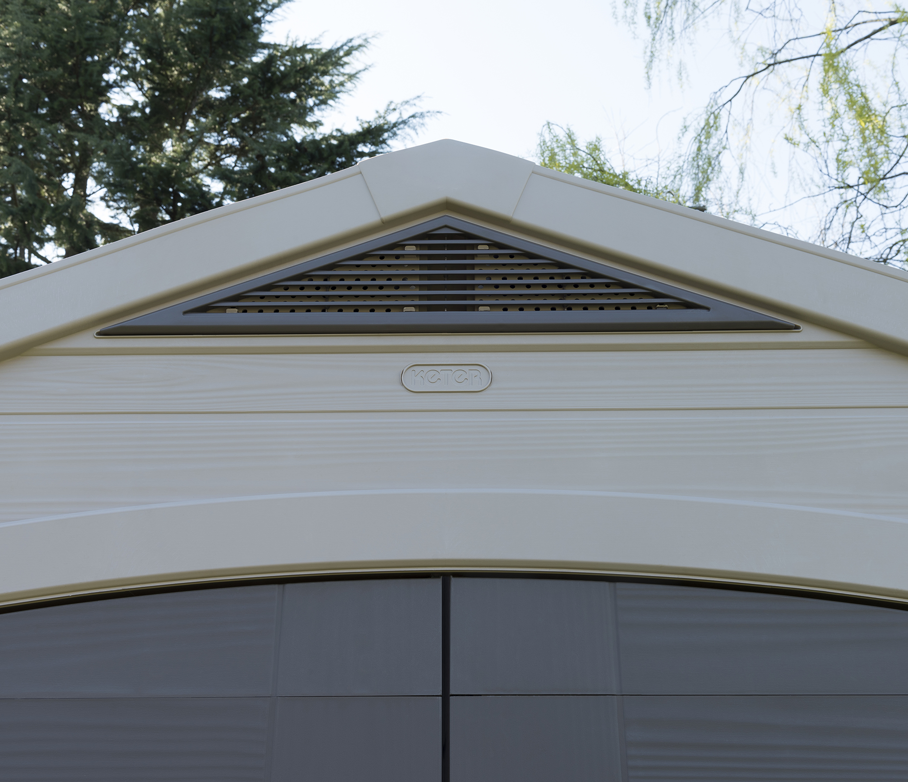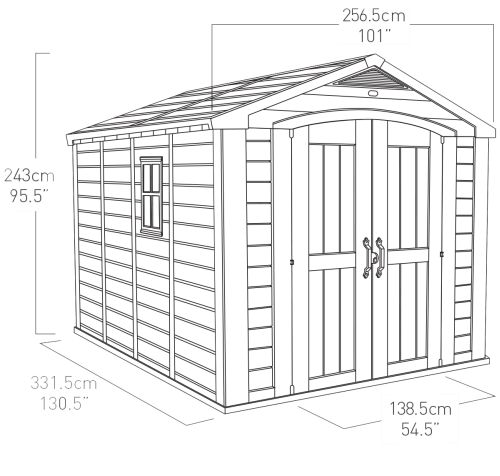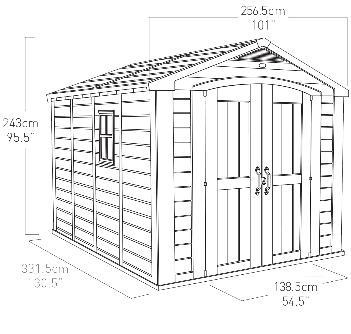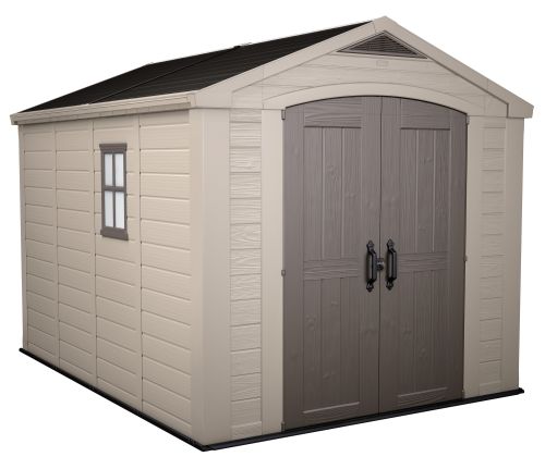 This elegant outdoor garden shed makes storing just about anything simple and elegant. The Keter 8 x 11 large apex resin shed is made out of a durable and weather-resistant resin that has a fine wood-like texture for looks and incorporates steel reinforcement for sturdiness.