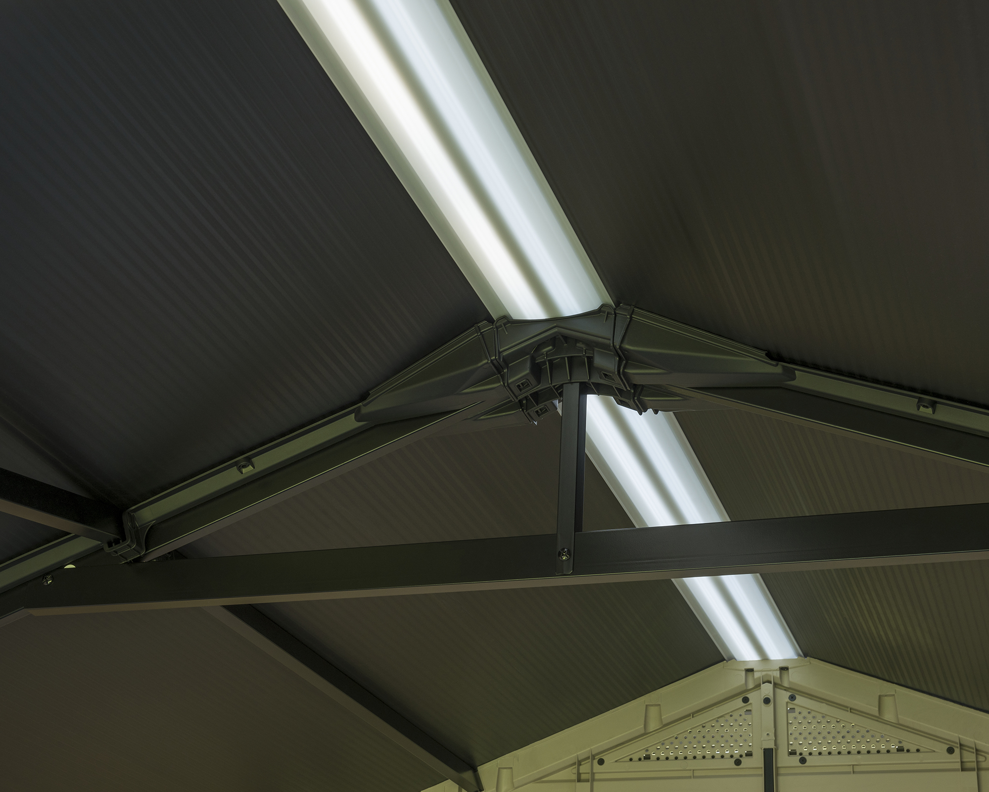 - Assembled external dimensions: 331.5 x 256.6 x 243 cm (L x W x H); internal dimensions: 311.5 x 236.5 x 238.5 cm (L x W x H)