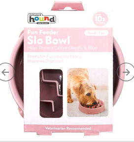 Outward Hound uniquely designed Fun Feeder dog bowls feature meal-lengthening ridges to help slow down your dog?s eating time by 10X! Common issues that arise in fast-eating dogs include bloating, regurgitation, and canine obesity. Our Fun Feeder Slo Bowls both challenge and engage your dog during mealtime while helping reduce overeating behavior. Outward Hound's Fun Feeder Slo Bowl, slow feeder dog bowls are made to hold in both fun and food as your dog forages through the fun patterns with its non-slip base. Bowls are BPA, PVC, and phthalate free. Fun Feeders are available in multiple sizes and ridge patterns. These bowls are great for dry, wet, or raw food diets. The Large/Regular holds up to 4 cups of dry kibble, the Medium/Mini holds 2 cups, and the Small/Tiny holds 3/4 cup. Fun Feeder dog bowls are top rack dishwasher safe. Less work for you means more pup playtime after!
