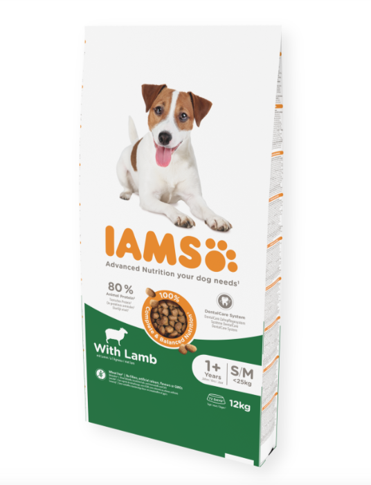 IAMS for Vitality small and medium breed adult dog food is 100% complete and balanced expert nutrition to help support your dogÔÇÖs 7 signs of healthy vitality. All of this packed into a tasty recipe with 80% animal protein (out of total protein) for your pet to enjoy every day. https://www.iams.co.uk/products/dog-food/products/iams-for-vitality-adult-small-and-medium-breed-dog-food-with-lamb