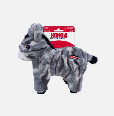 KONG Low Stuff Stripes’ irresistibly soft plush and floppy bodies invite comforting cuddles while the lower tone squeaker keeps dogs engaged. Unique, high-contrast stripes make these barnyard buddies easy to spot and their legs are shaped so that all sizes of dogs can grab them. Minimal stuffing for less mess.