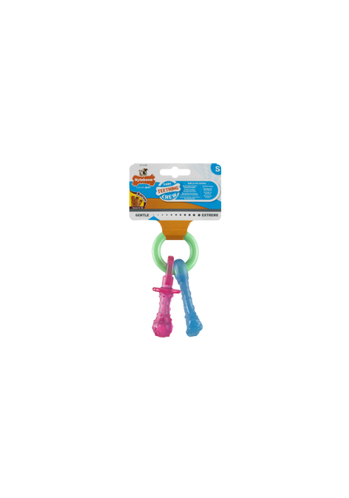 Made with a soft, durable nylon these toys were made for puppies who have their very first set of teeth. The extra flavour infused throughout is sure to captivate your furry friend's attention, encouraging them to chew and play while promoting healthy dental habits. Bacon flavour. Helps clean teeth and freshen breath with every chew. Ideal for extra small dogs up to 7kg.
