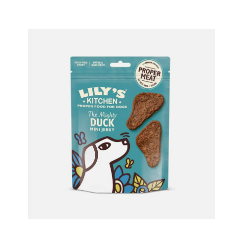 Mighty in taste and packed full of lip-lickingly delicious, proper meat, your dog will be over the moon with our mini jerky! Made with freshly prepared duck and gently oven baked for a lovely, chewy, flexible texture, this mini jerky is full of valuable protein and makes a simply delicious, natural treat. Perfect for training, in between meals or… just because. These tempting treats are made to a grain free recipe, with natural ingredients and without any added nasties - so your furry family can enjoy them every day. Mix and match our pocket-size bags to find your dog’s perfect treat-time. Feeding guidelines: These treats are suitable for dogs from 4 months old. Up to 5 a day. Always make sure there’s a bowl of fresh water available. We like to keep our four-legged friends fit and healthy so it’s best not to feed them too many treats. Always supervise your dog when they’re eating a treat. (Excited dogs can sometimes forget to chew!)