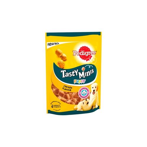 Succulent bite size mini dog treats - PEDIGREE® Tasty Minis Junior are soft, chewy chunks, specially designed with added calcium to help support the growth of strong teeth & bones. Ideal for training, rewarding or just treating your dog at any time.