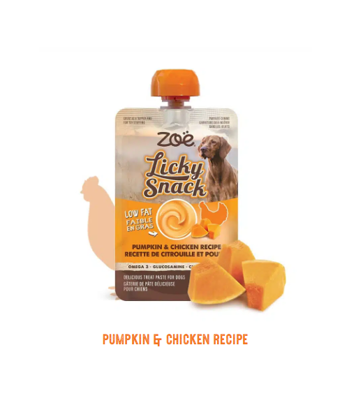 Composition: Pumpkin (55%), chicken (5%), tapioca, oats, natural flavour, cellulose, fish oil, sunflower oil, citric acid, vegetable gelling agent, glucosamine hydrochloride (0.035%), chondroitin sulphate (0.035%). Additives: Omega 3 fatty acids 1000mg/kg.