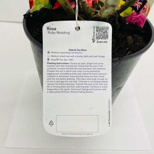 Dig to about a spades depth and mix in organic material - we recommend Blended Farmyard Manure or Rose, Tree and Shrub compost. If planting in the Autumn and Winter use a mug full of Bonemeal mixed in too. Remove the rose from the pot and plant so that the top of the rootball (and the union) are at or slightly below soil level. Firm well with your foot. Water thoroughly.