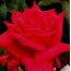Rosa 'Ruby Wedding' is an HT bush rose with ruby red fully double blooms.